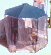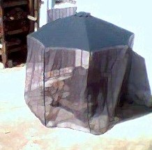 En la parte inferior de la malla hay orejas para fijarla al piso para que no se vuele.